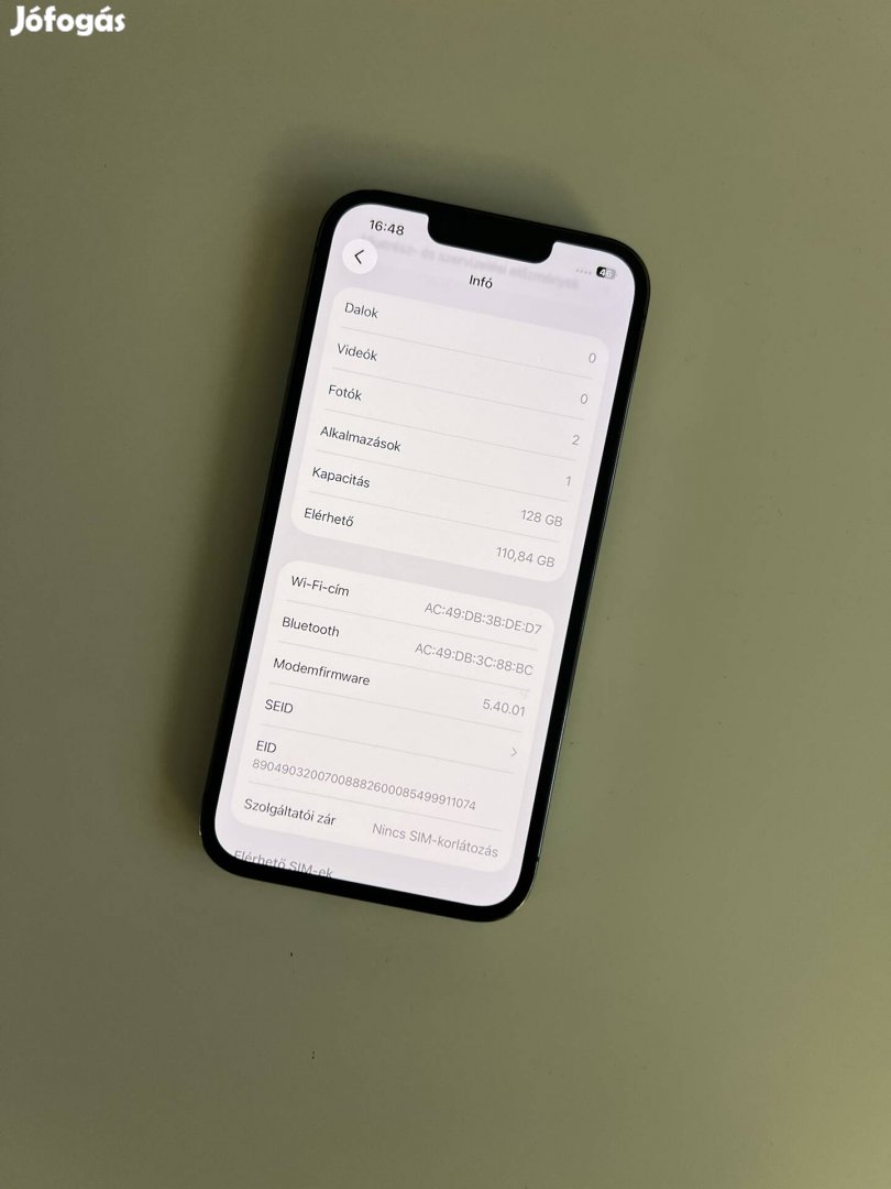 Eladó egy szép állapotban lévő kártyafüggetlen iphone 13 Pro 128GB Graphite, minden funkciója tökéletesen működik, akksi 76%.