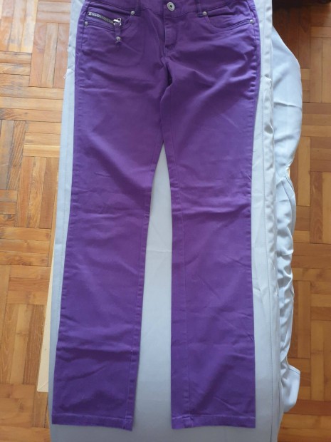 Barna egyenes szárú vászon női nadrág 40-es