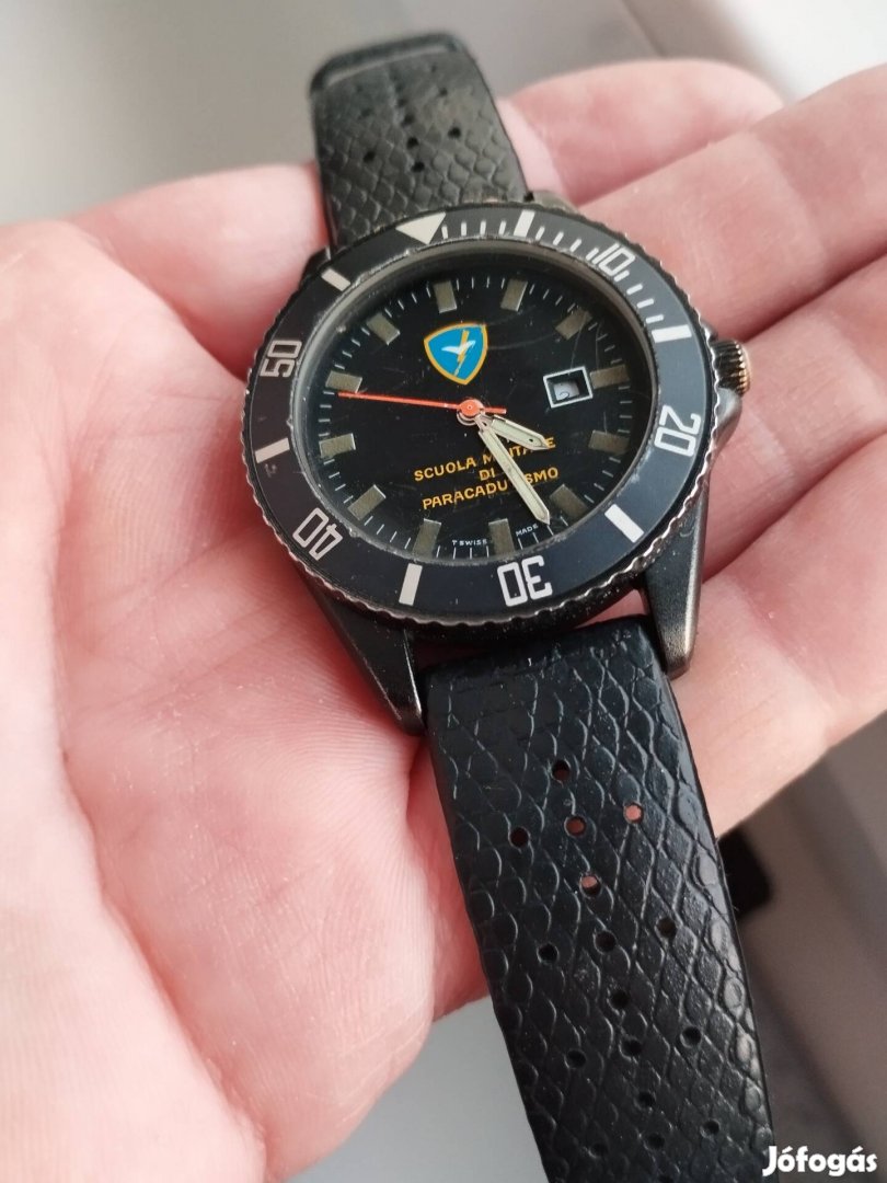 Normál műkődő eredeti állapotában.Katonai óra a 80-as évekből.Az olasz légierő órája.Dpw bevonatú tok,a lünetta nem forgatható,korona záras.