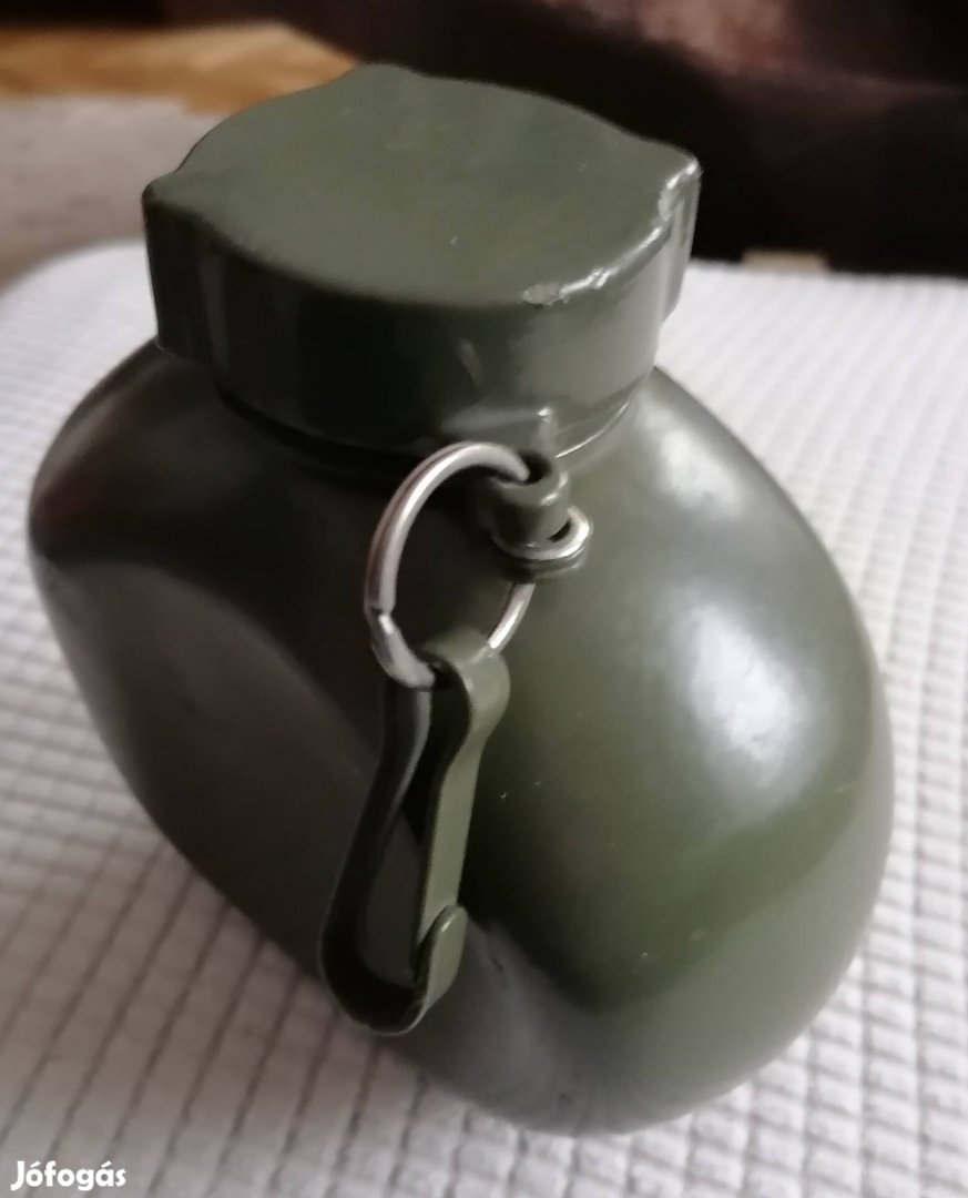 Katonai kulacs, zöld, karabinerrel felakasztható, kb. 1 literes