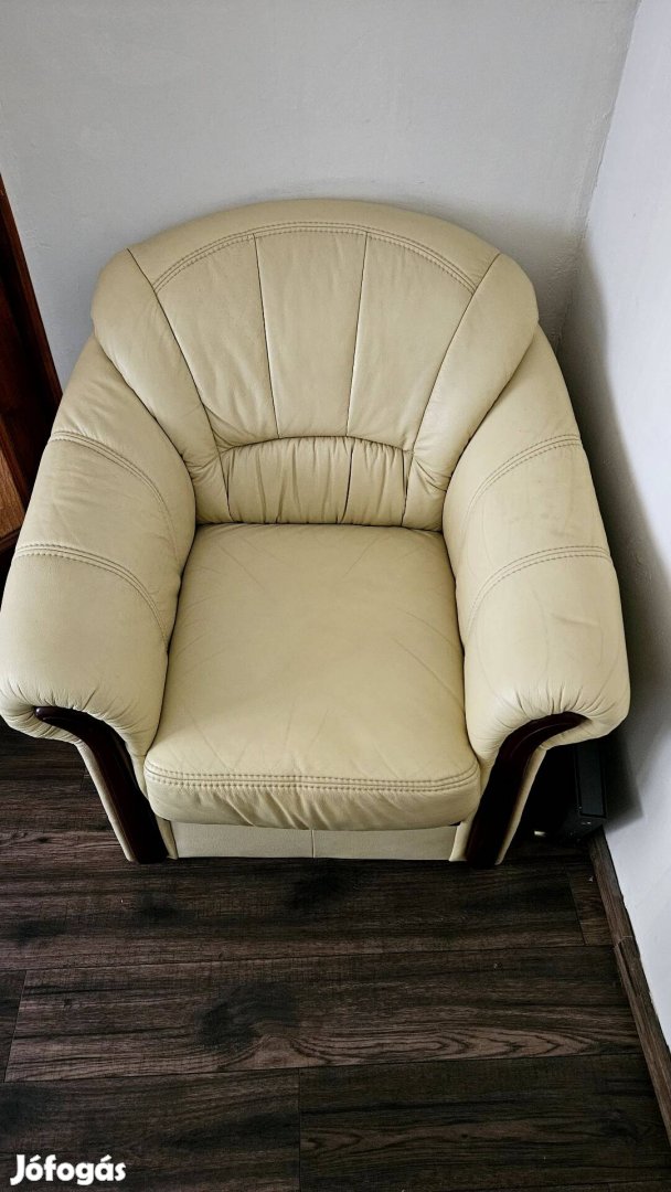 krém színű bőr, alig használt fotel