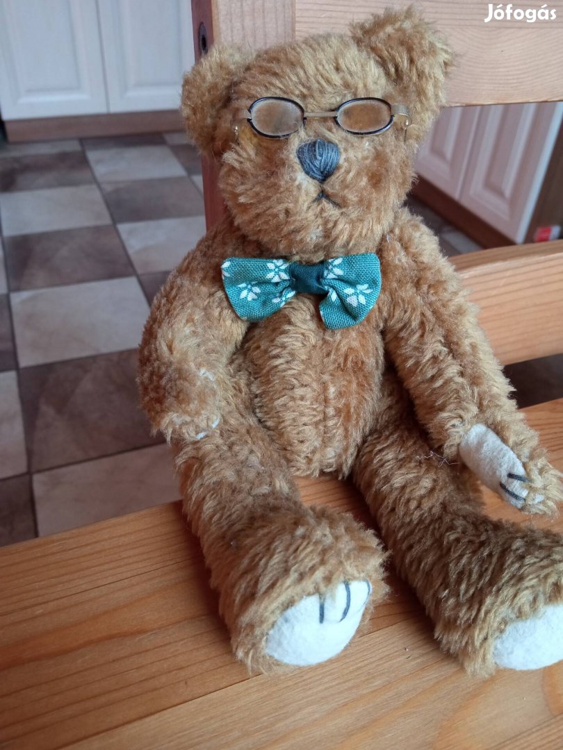 23 cm-es, szemüveges mackó apó. Feje, végtagjai mozgathatók. Személyesen is átvehető a XIII. kerületben.