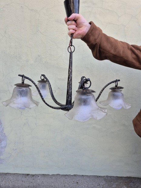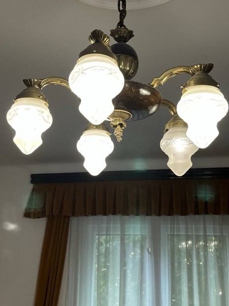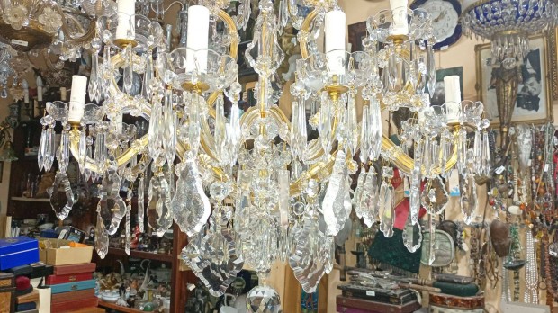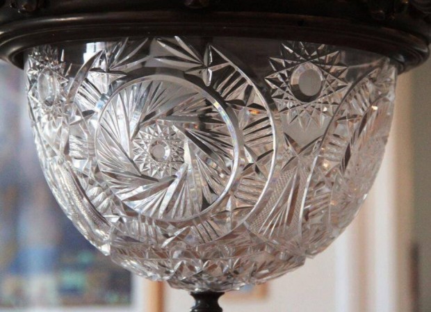 Nyolc karú bronz csillár metszett üveg búrával