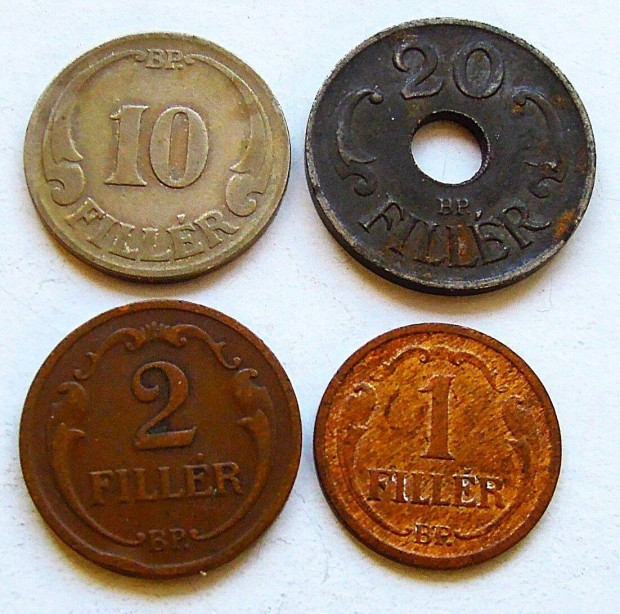 Magyar Királyság fillér fémpénz érme 4 db egyben