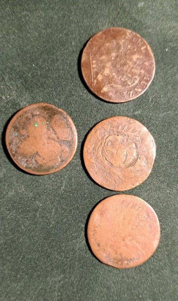 Régi templomkerti lelet 4 db 1819. századi réz érme,