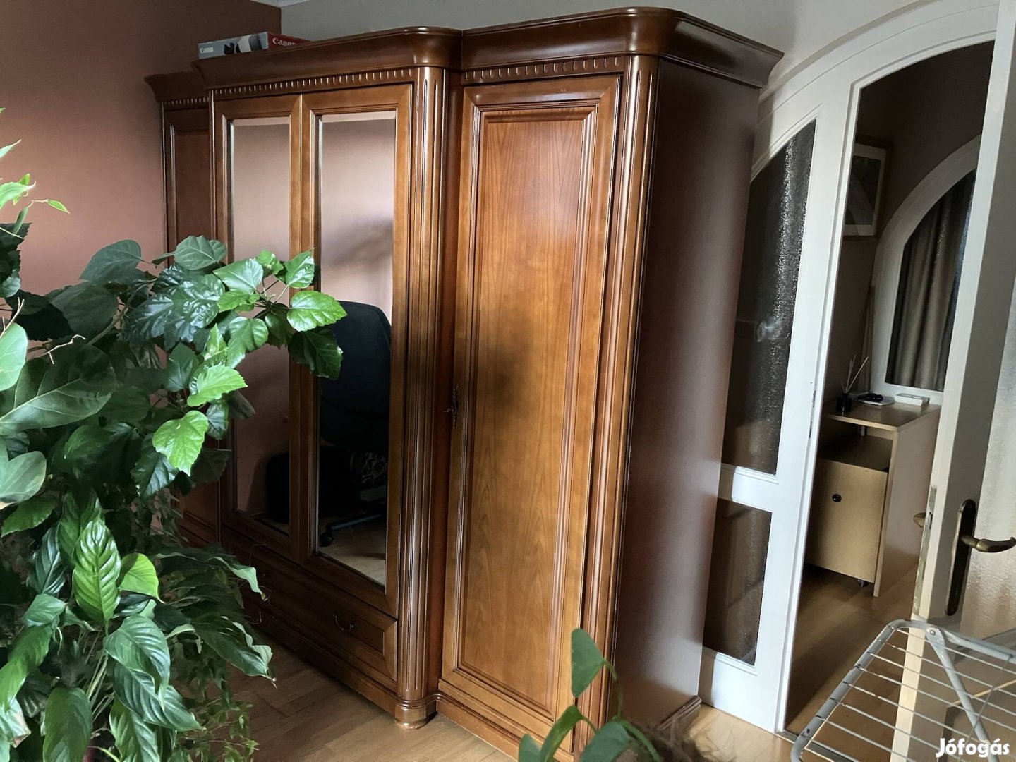szep allapotu szekreny, kozepso resze akasztos, szelso ket resze 5 polcos, alul fiok. megkimelt szep allpotu massziv szekreny, hely hiany miatt elado