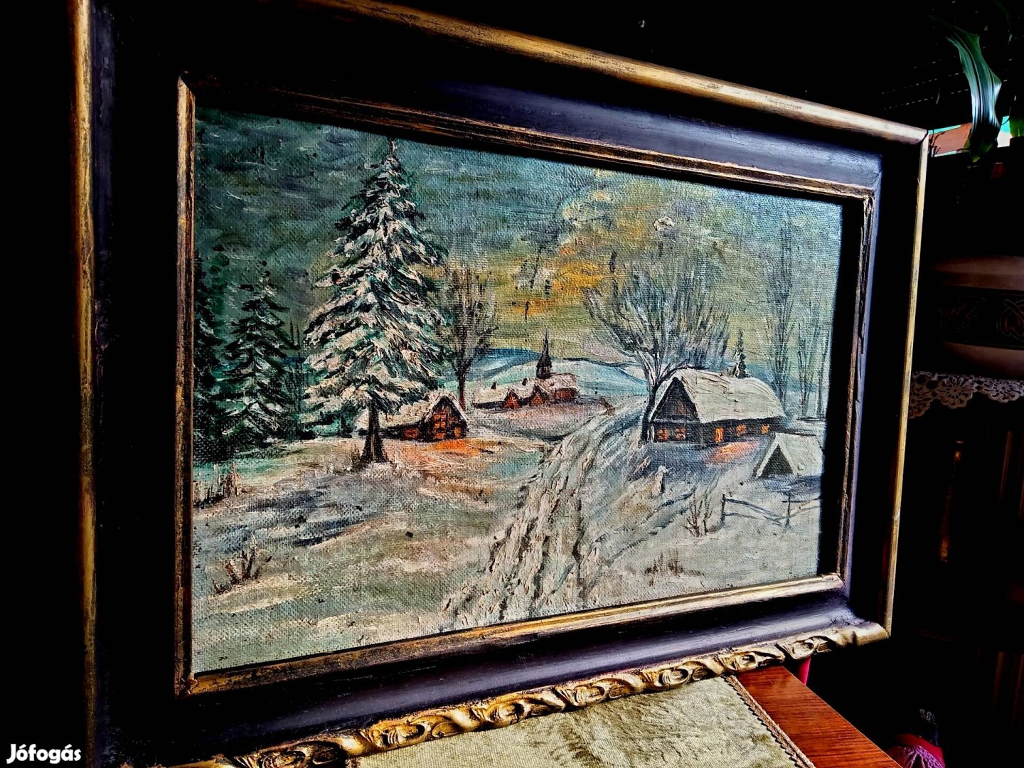 Eladó fenti festmény ,olaj farost ,régi aranyozott fa keretben ,1983-ból ,mérete 67x46 cm,postázni nem tudom Gábor irányára 25000 ft