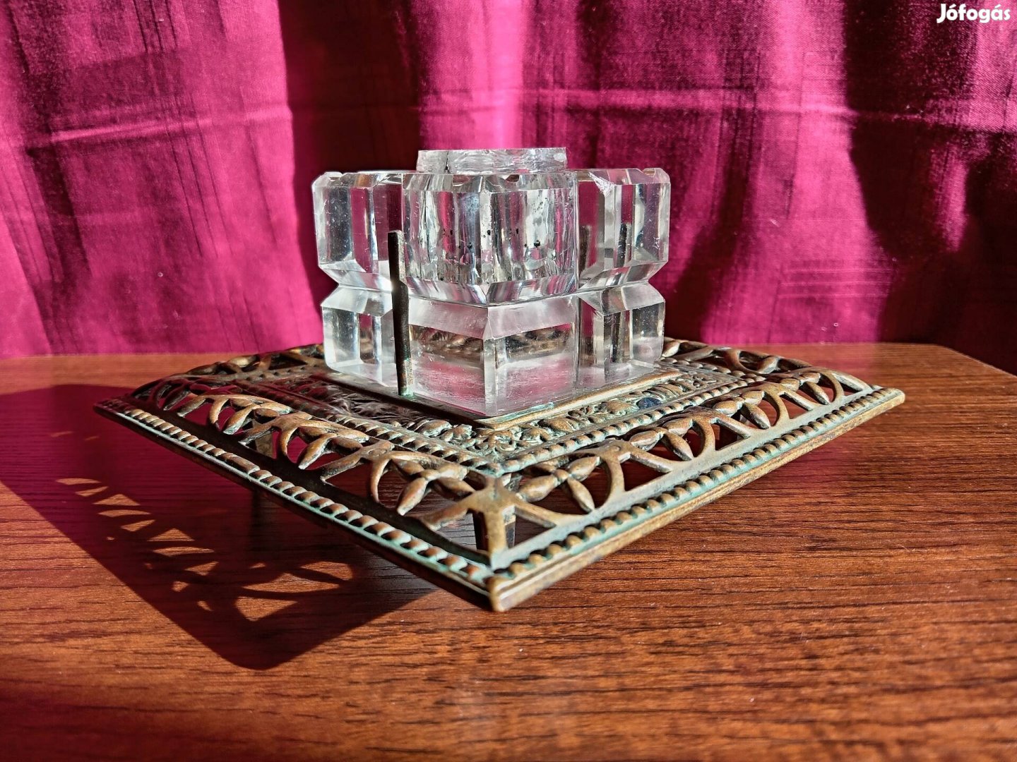 régi réz és kristály tintatartó üveg