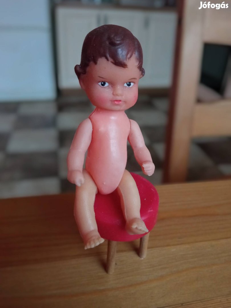 11 cm-es, retro játékbaba, székkel. Személyesen is átvehető a XIII. kerületben.