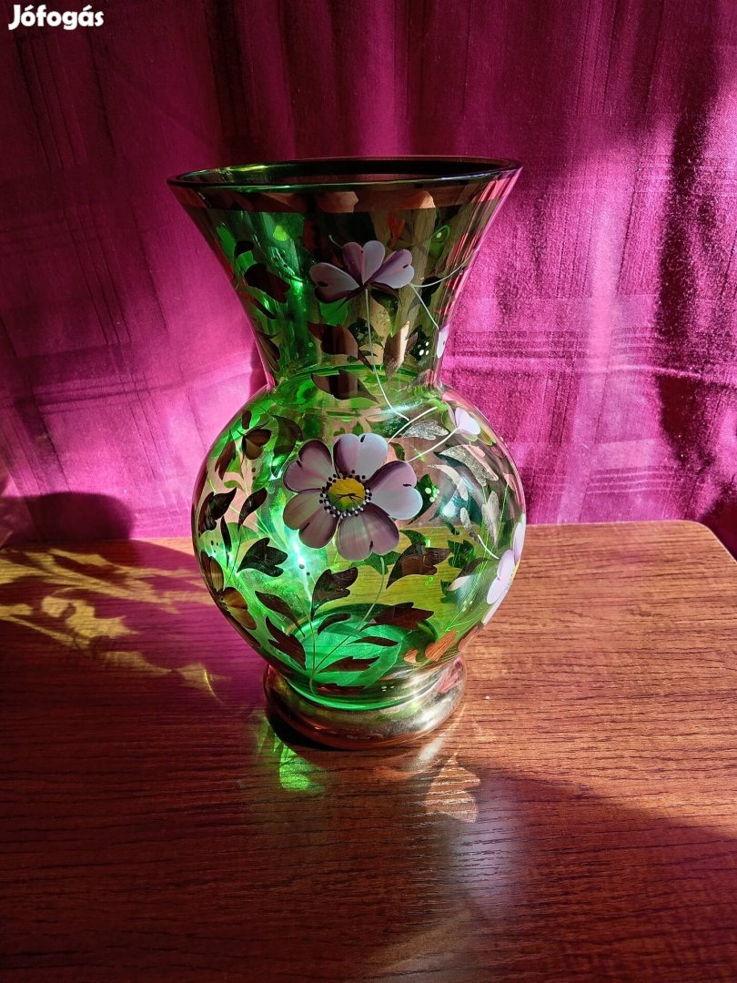 Eladó fenti Bohemia zöld kézzel festett váza ,22cm magas , hibátlan állapotú családi hagyaték ,gyűjtőnek vagy ajándéknak ajánlott ,postázni nem tudom Gábor