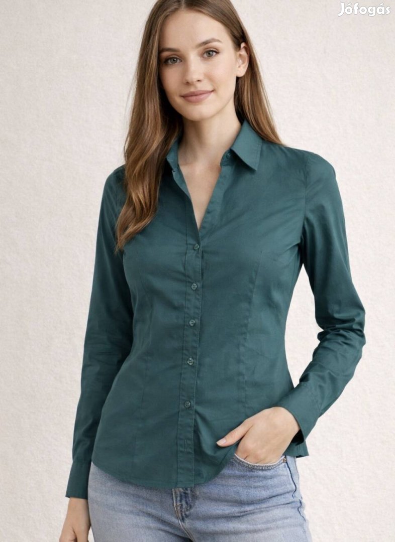 Elegáns, karcsúsított fazonú női ing gyönyörű zöldes petrol színben.