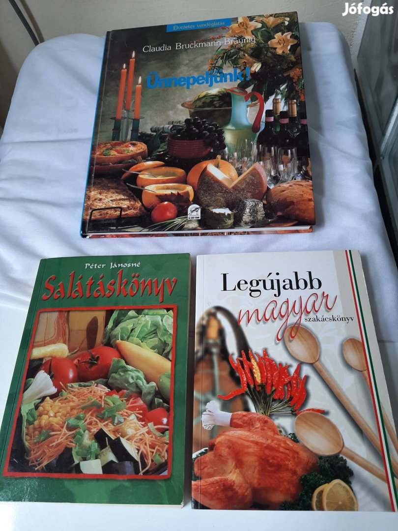3 darab szép állapotú, nem használt szakácskönyv. A nagy alakú új kiadású , fényes papírra nyomott.