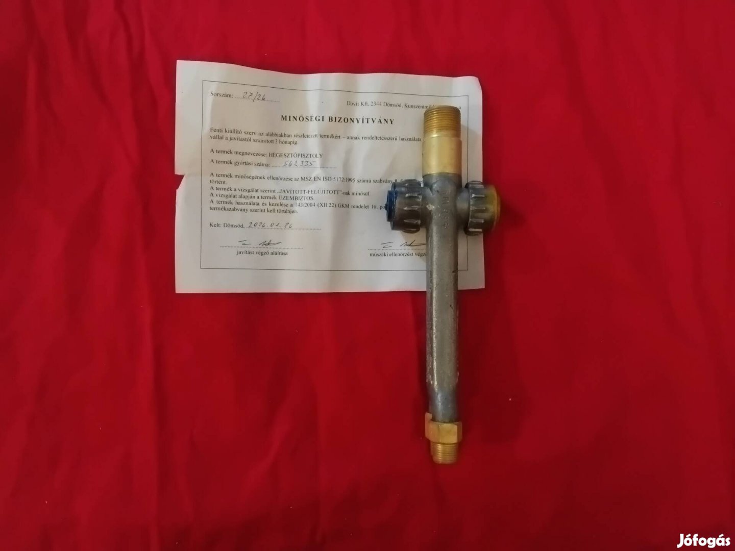 Eladó a képeken látható kifogástalan állapotú, felújított, minőségi tanúsítvánnyal rendelkező magyar varga gyártmányú lánghegesztő, hegesztő markolat számlával, garanciával! Háztól házig szolgáltatással is megrendelhető! Posta, futár, csomagautomata, foxpost megoldható a vevő költségére! További hirdetéseimet is ajánlom figyelmébe! Csőszerelő, hegesztő szerszámok, eszközök megtalálhatóak a hirdetéseimet között!