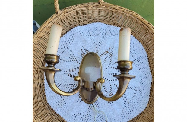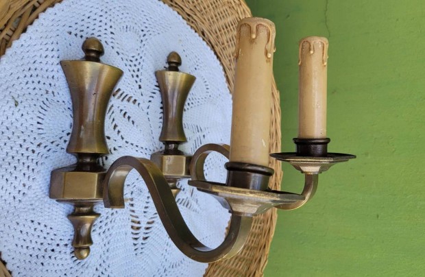 Vintage csodás réz kétágú falikarpár -gyertyaizzós