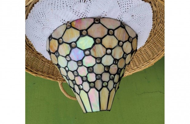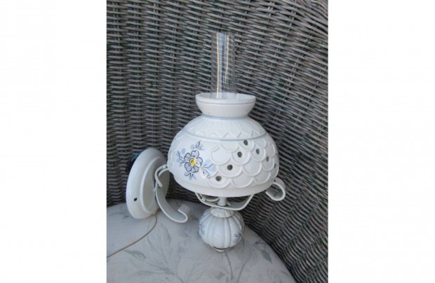Kovácsoltvas, színes mintás majolika búrás falilámpa