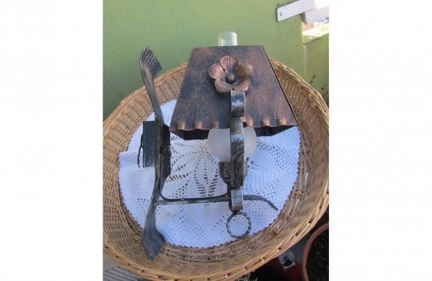 Kovácsoltvas, fémbúrás, cilinderes falilámpa