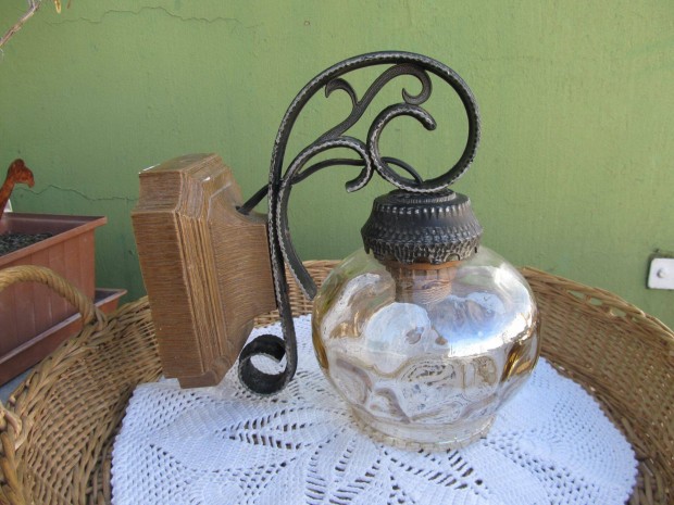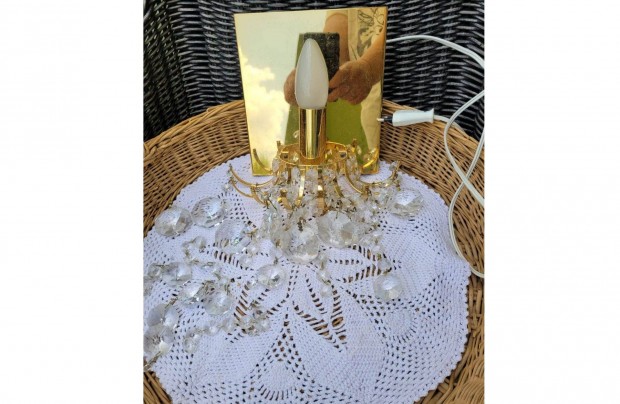 Vintage, fém, kristályüveg falilámpa