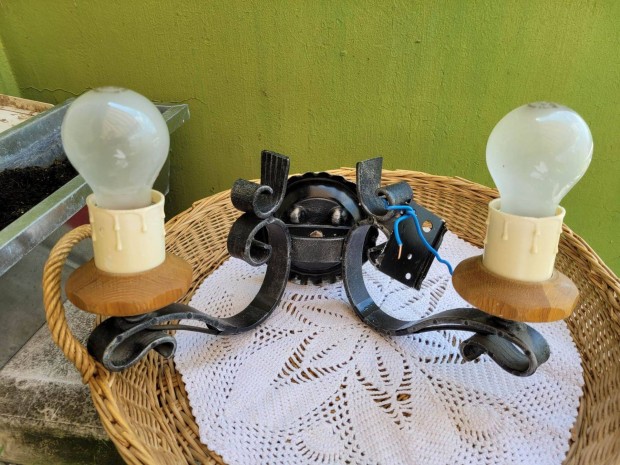 Vintage 2 ágú kovácsoltvas falilámpa