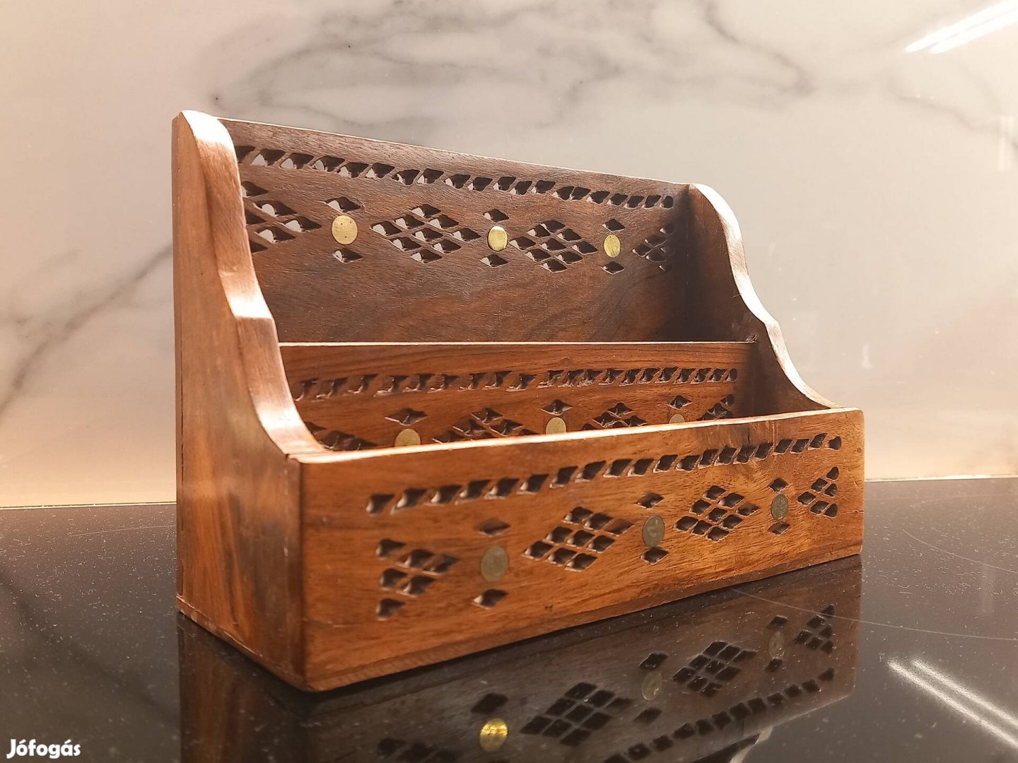 Elegáns rézbetétekkel díszített gyonyörű faragott fa levéltartó