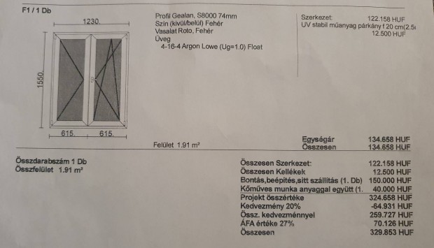 Hőszigetelt 60x60-as műanyag ablak, bontott