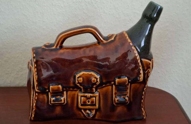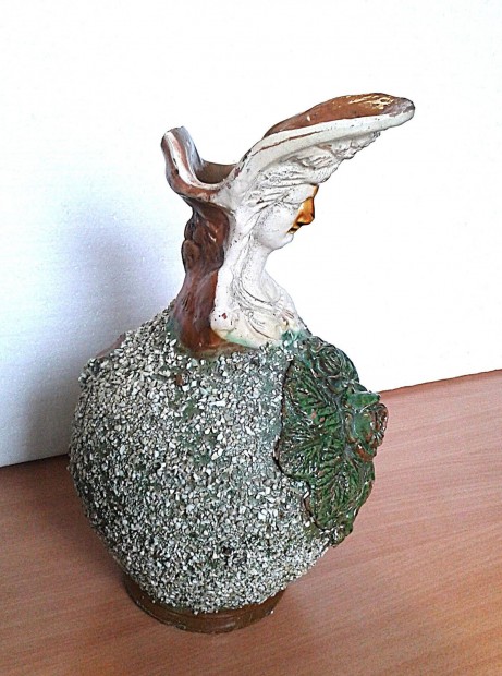 Antik kézzel festett kétfüles zöld mázas kerámia korsó