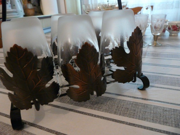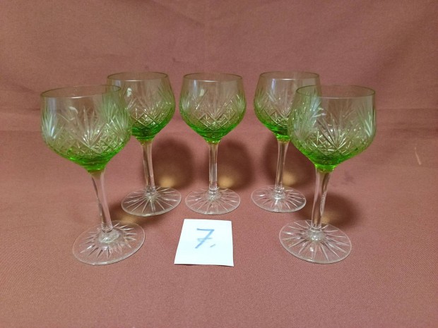 5 db = Régi csiszolt zöld üveg italos pohár készlet eladó ! 7