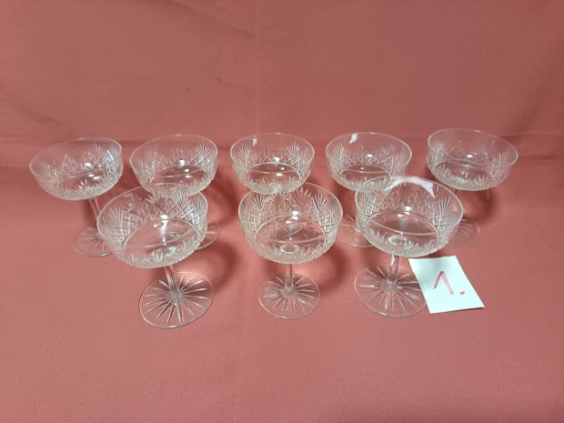8 db = Régi csiszolt pezsgős üveg italos pohár készlet eladó ! 1