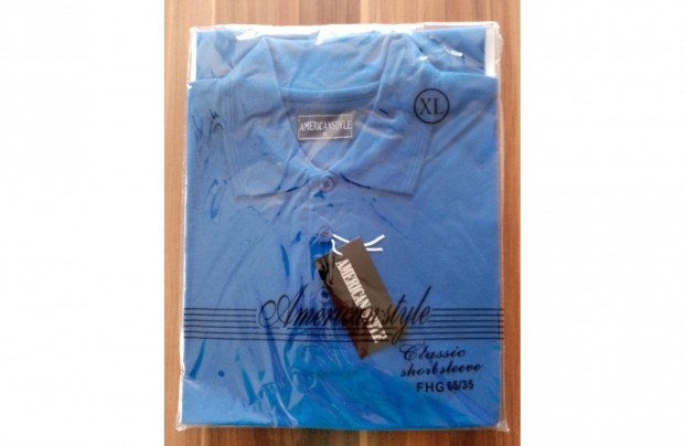 Férfi galléros királykék, új, rövid ujjú póló (Méret: XL)