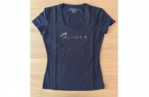 Új L Guess Női Póló SS RN Shiny Strasszos Rövidujjú Fekete Felső