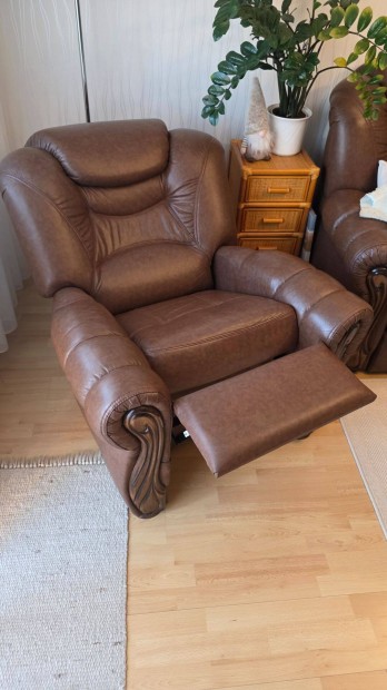 Bőr ülőgarnitűra két fotellel kávébarna színű