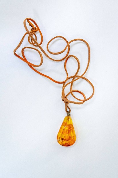Hatalmas borostyán szív medál nyaklánccal
