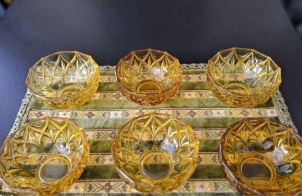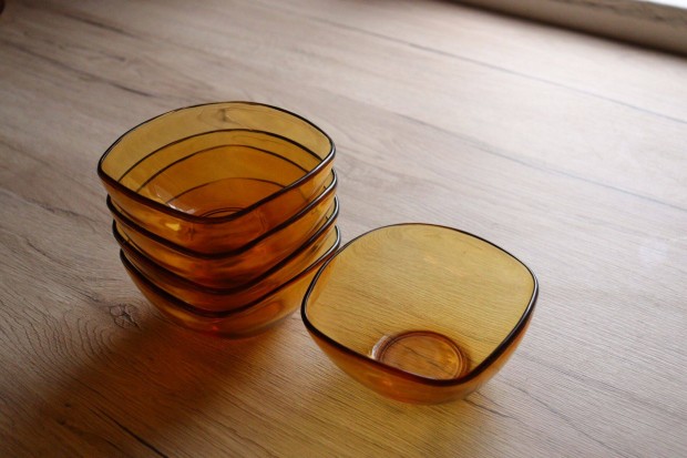Borostyán színű retro pudingos üvegtál, 5 db