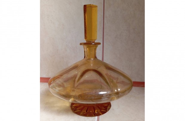 Borostyán színű brutalista stílusú pohár, 4 db