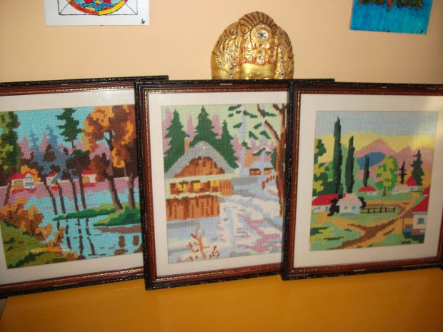 Régi gobelin kézimunka képek keretekben 800 Ft