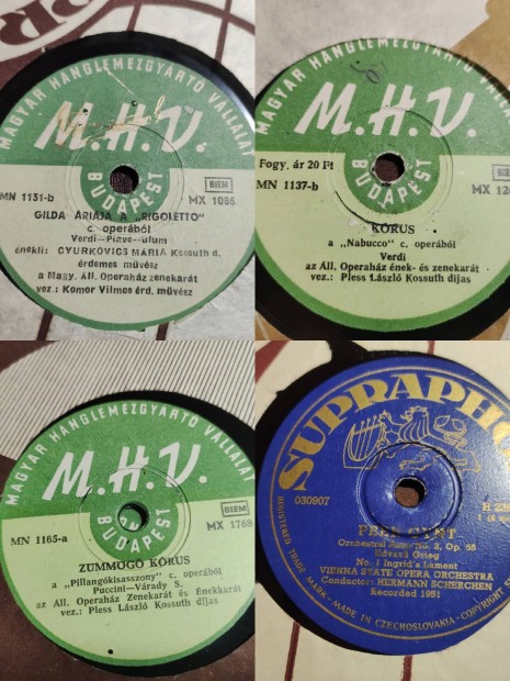 Működő gramofon tölcséres + régi bakelit lemezek (Electrola, Odeon)