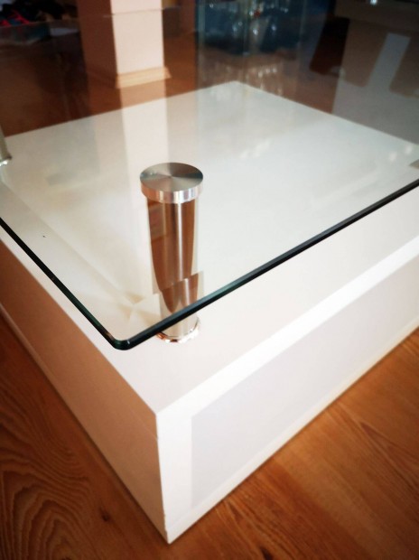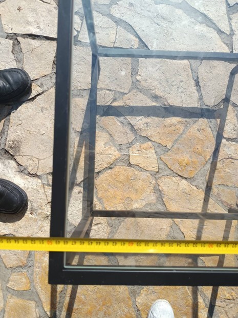 Kisasztal üveglappal 50x50x50cm fekete, fém kerettel