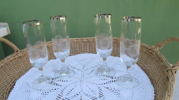 Vintage, homokfúvott, koszorú dekoros boros kehely