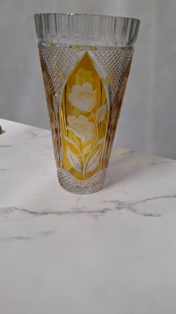 Csiszolt. gyönyörű állapotú kristály üveg váza
