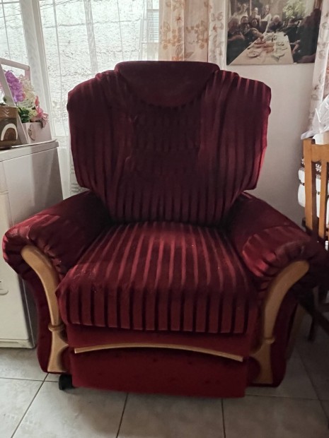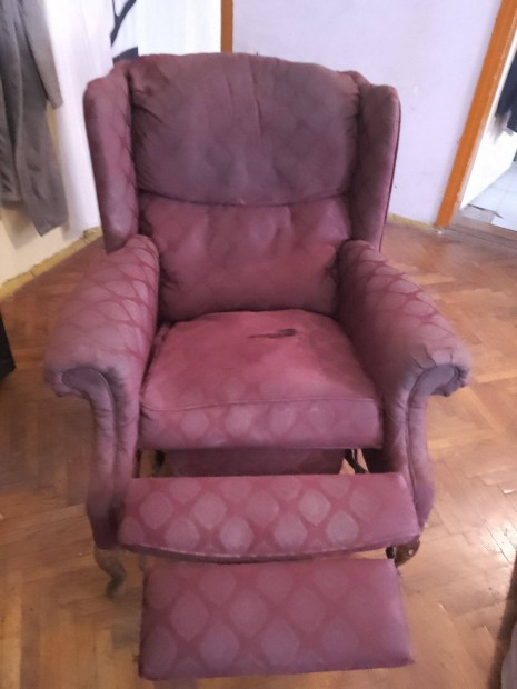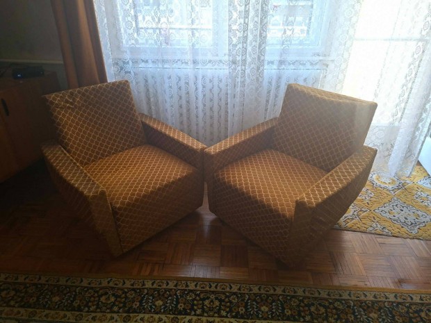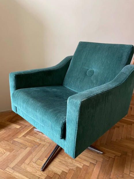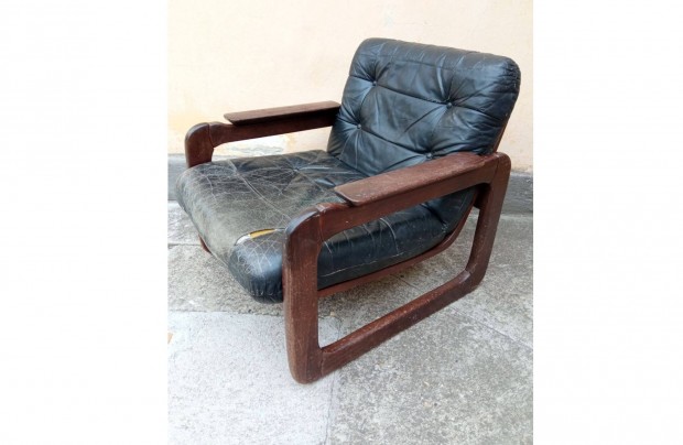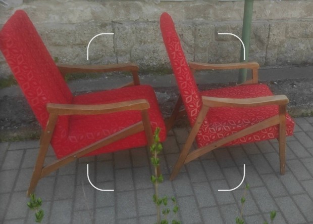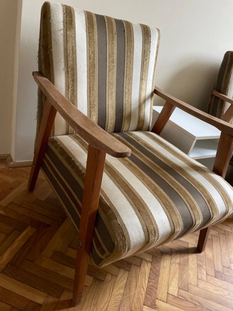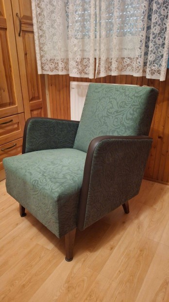 Retro pálcika hátú fa vázas lecipzarozható huzatú fotel