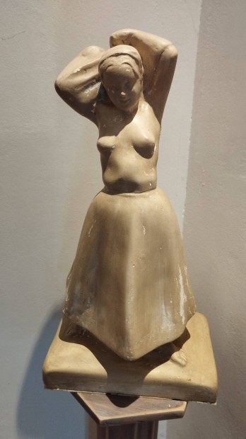 Antik szobor, tömörfa állvánnyal.