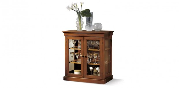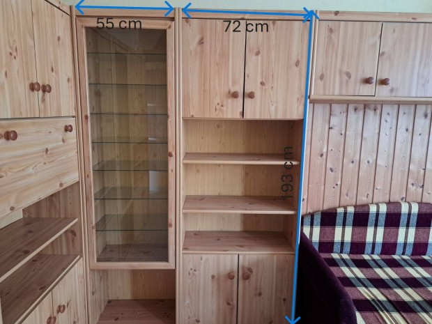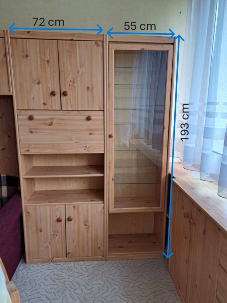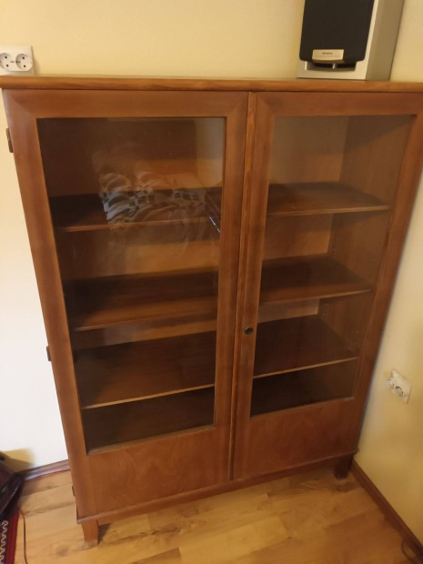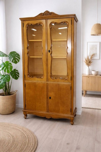 Masszív, régi tömörfa vitrines szekrény / tálaló szép állapotban