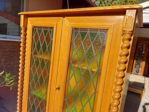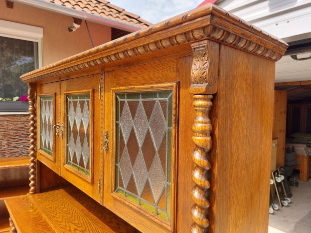 Masszív, régi tömörfa vitrines szekrény / tálaló szép állapotban
