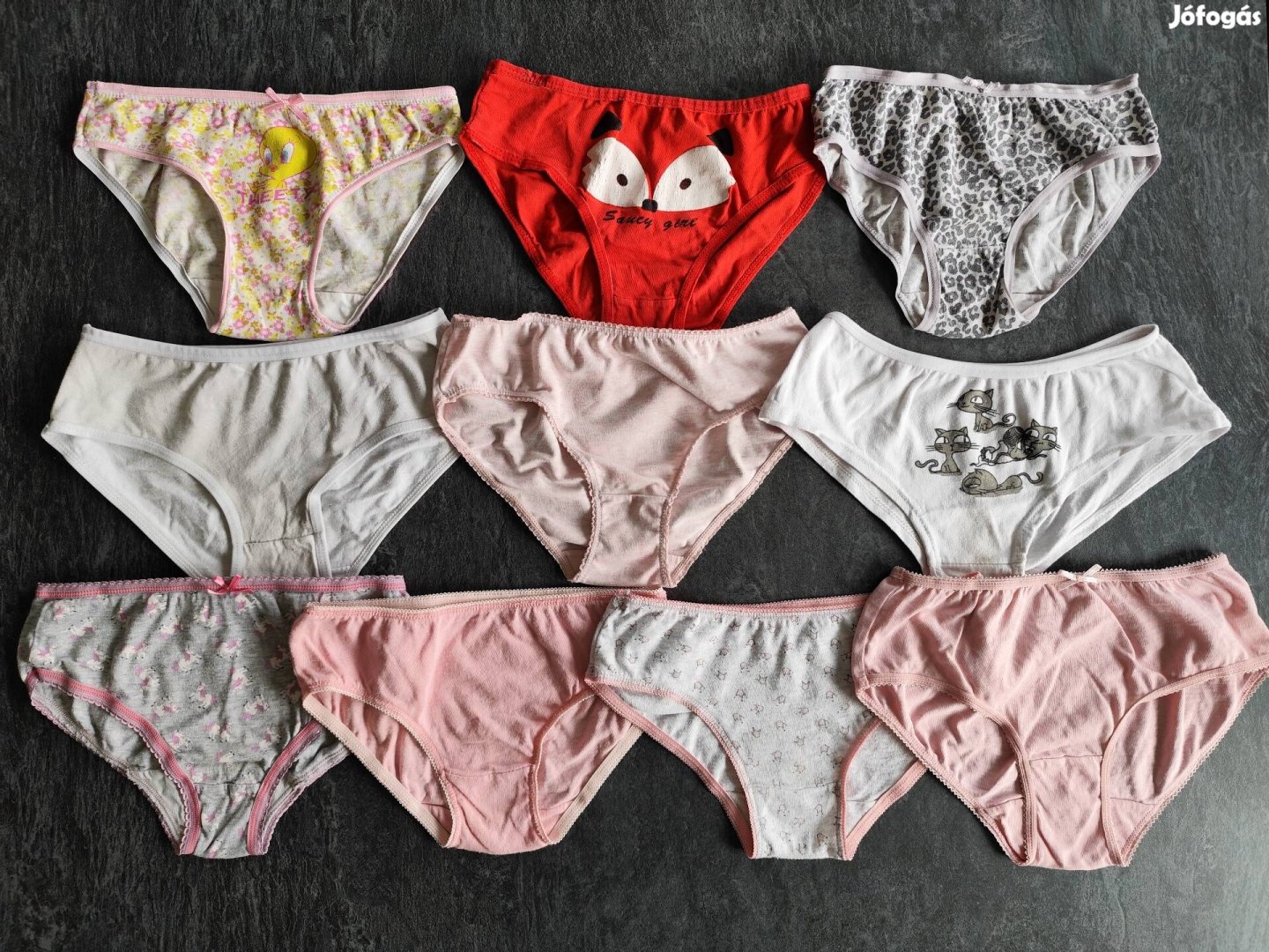 128-134-es 10 db-os használt állapotú bugyi csomag. Kérdés esetén szívesen mérek, előreutalást követően szívesen postázok.