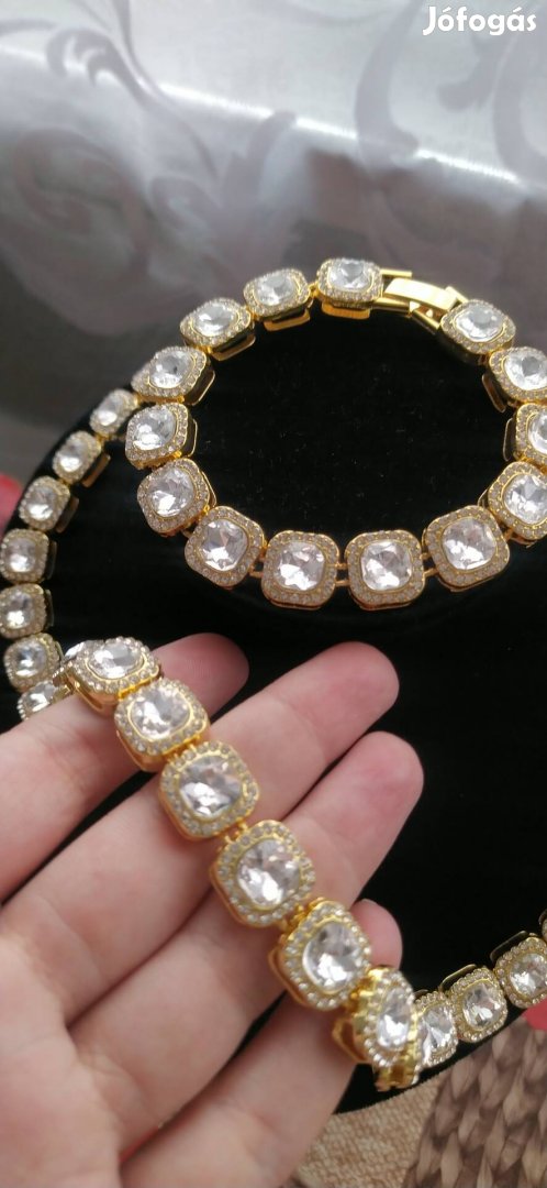 Kihasználatlanság miatt eladó Kubai luxus 18 K aranyozott strasszkővel és kocka kristály kövekkel díszített nagy köves alkalmi karkötő és nyaklánc szett .