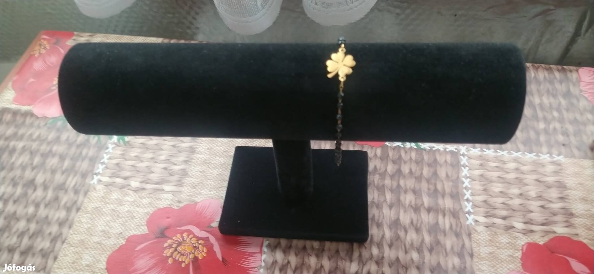Kihasználatlanság miatt eladó négylevelű lóhere mintás fekete gyöngyökkel díszített mutatós szerencsét hozó karkötő.