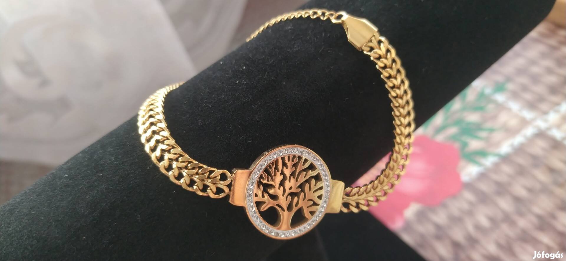 Kihasználatlanság miatt eladó élet fa strasszkővel kirakott alkalmi karkötő.