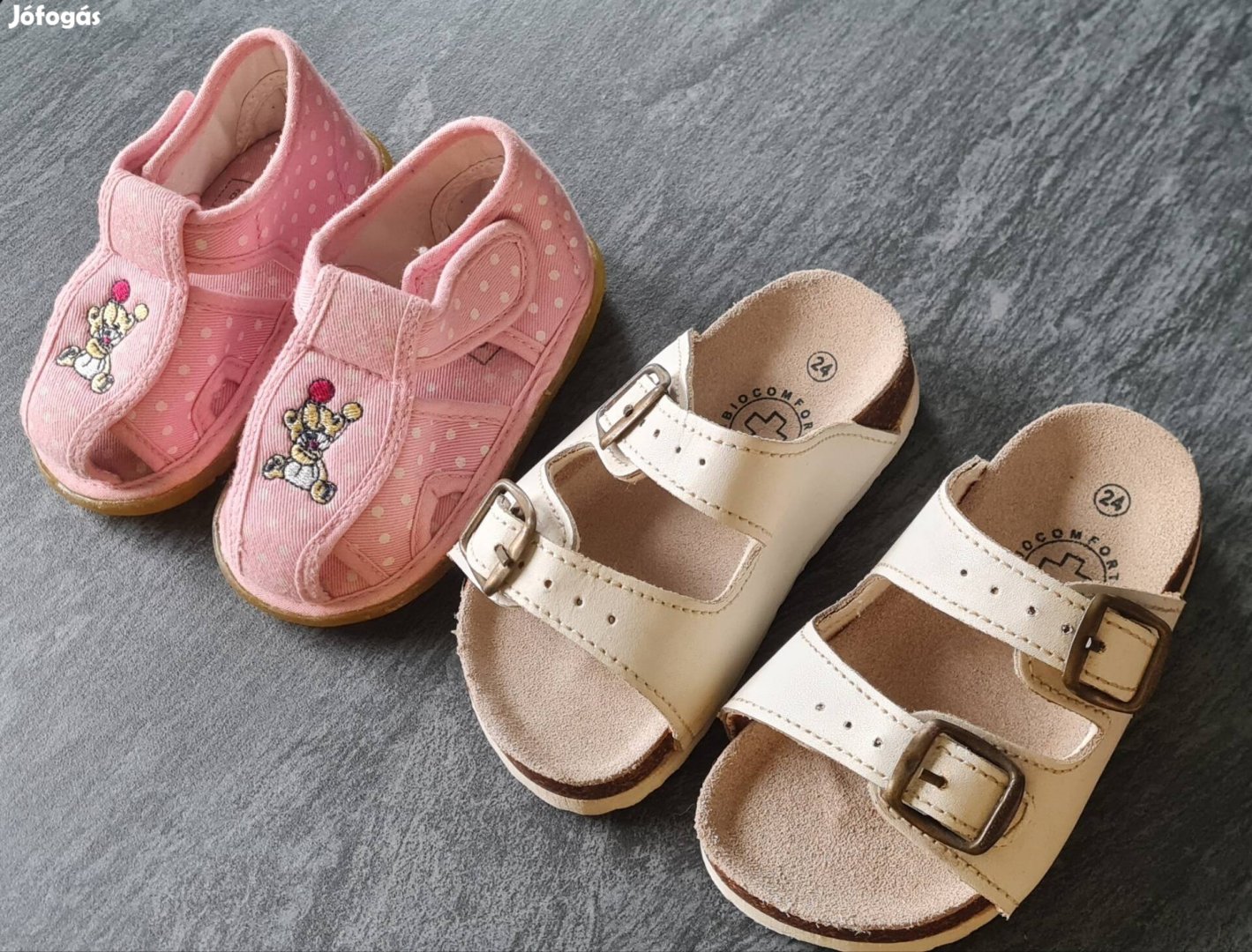 19-es keveset használt, zárt orrú vászon szandál / kocsicipő (bth:11,5), ill. 24-es bio papucs (bth: 13 cm) 1000 Ft/pár. Előreutalást követően szívesen postázom.