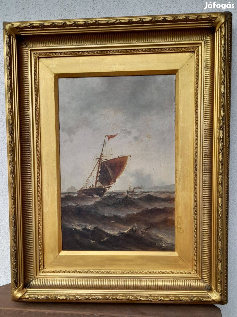 Keretezett mérete 71x56cm a kép olajkép faalapon aminek mérete31,5x47cm 1892-es dátummal.Személyes vagy csak Posta