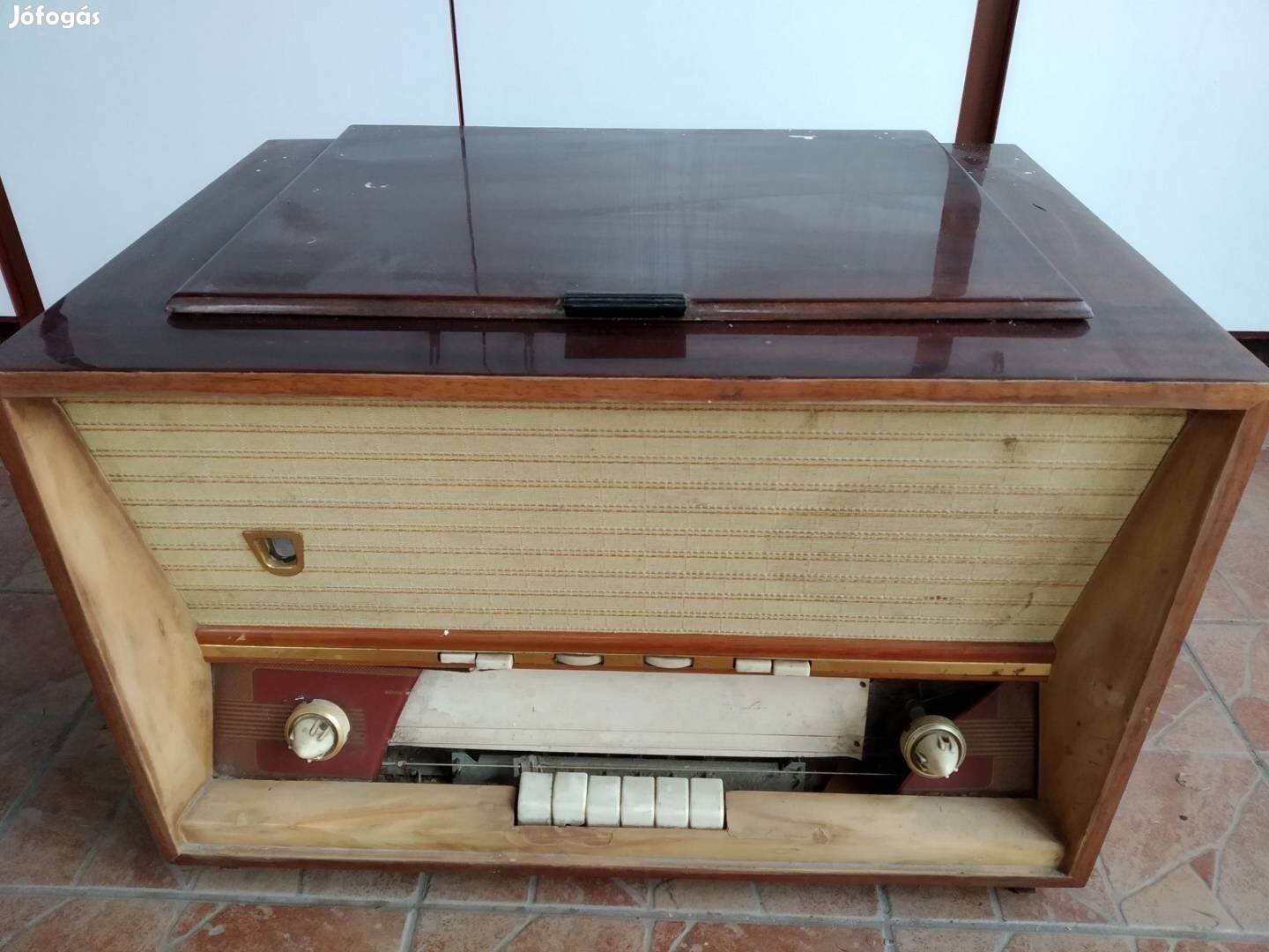 Sajnos a teljes lemezjátszó rész hiányzik, valamint az előlapi üveg is.