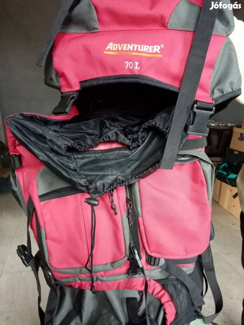 Adventurer Sports 70 l-es fekete-piros -Nem Rózsaszínű-használt hátizsák,túrazsák eladó.Hátmerevítős,-hát-,derék-,vállpárnázott.